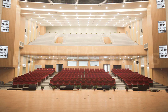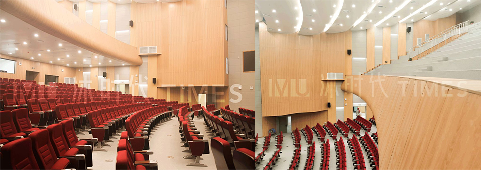 前洲文化中心整栋建筑的墙体,包括演播厅里面12米的超高墙面,都采用了通铺4米超长碳晶板的方式来装饰。