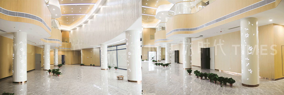 前洲文化中心总建筑面积为18721.5㎡,建筑高度为20.25m。沐时代为其建筑内部主体装饰以及报告厅一至三层,提供了碳晶饰面板作为内墙装饰材料。
