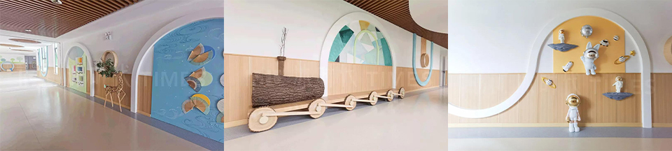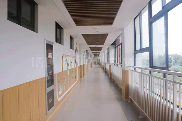 一直备受教育空间青睐的沐时代,为锡西实幼整个园区的室内装修,提供了碳晶饰面板作为墙面装饰材料、石晶地板作为地面装饰材料。