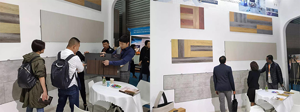 在今年的国际材料展上,沐时代石晶墙板吸引了大量关注,众多专业人士十分看好石晶墙板的发展前景,纷纷向沐时代工作人员详细了解性能与工艺。