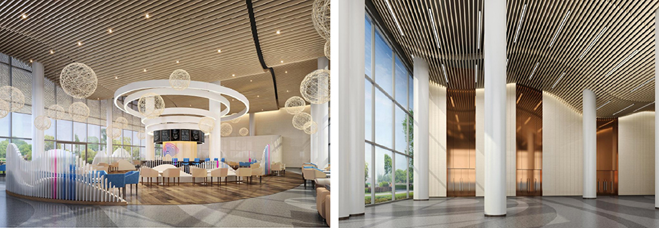 利用捷墨板"可任意异型折弯"的核心特性,在工厂内根据设计图纸,将板材预加工成精确的弧形单元。这不仅实现了设计师想要的流畅曲线,也确保了现场安装的精度与效率。